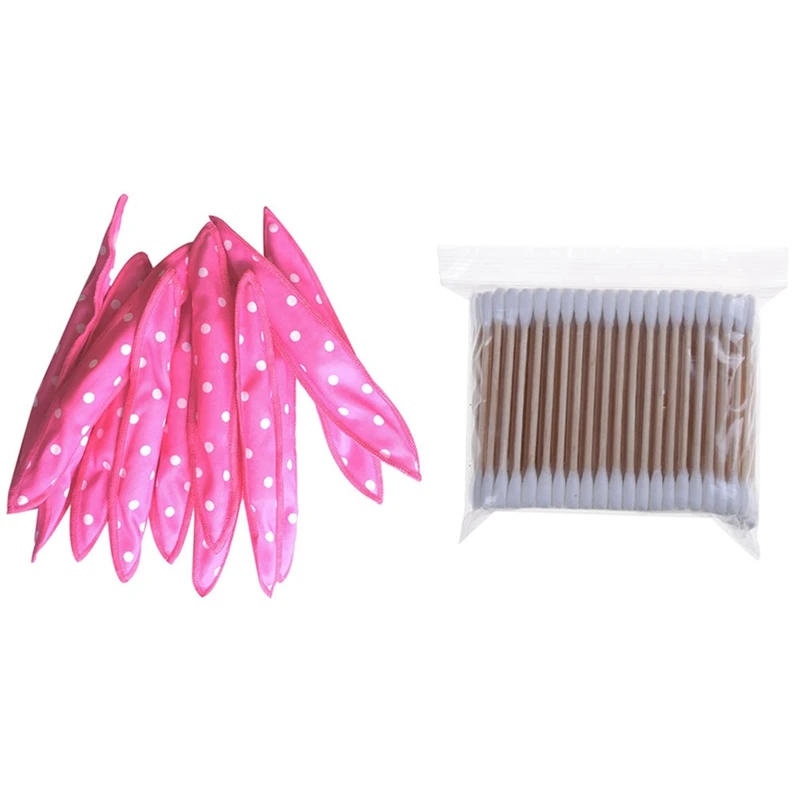 200 Pcs Wooden Handle Double Tips Cotton Buds & 10 Pcs Hair Curlers Soft Sleep Pillow Hair Rollers Set Best Flexible