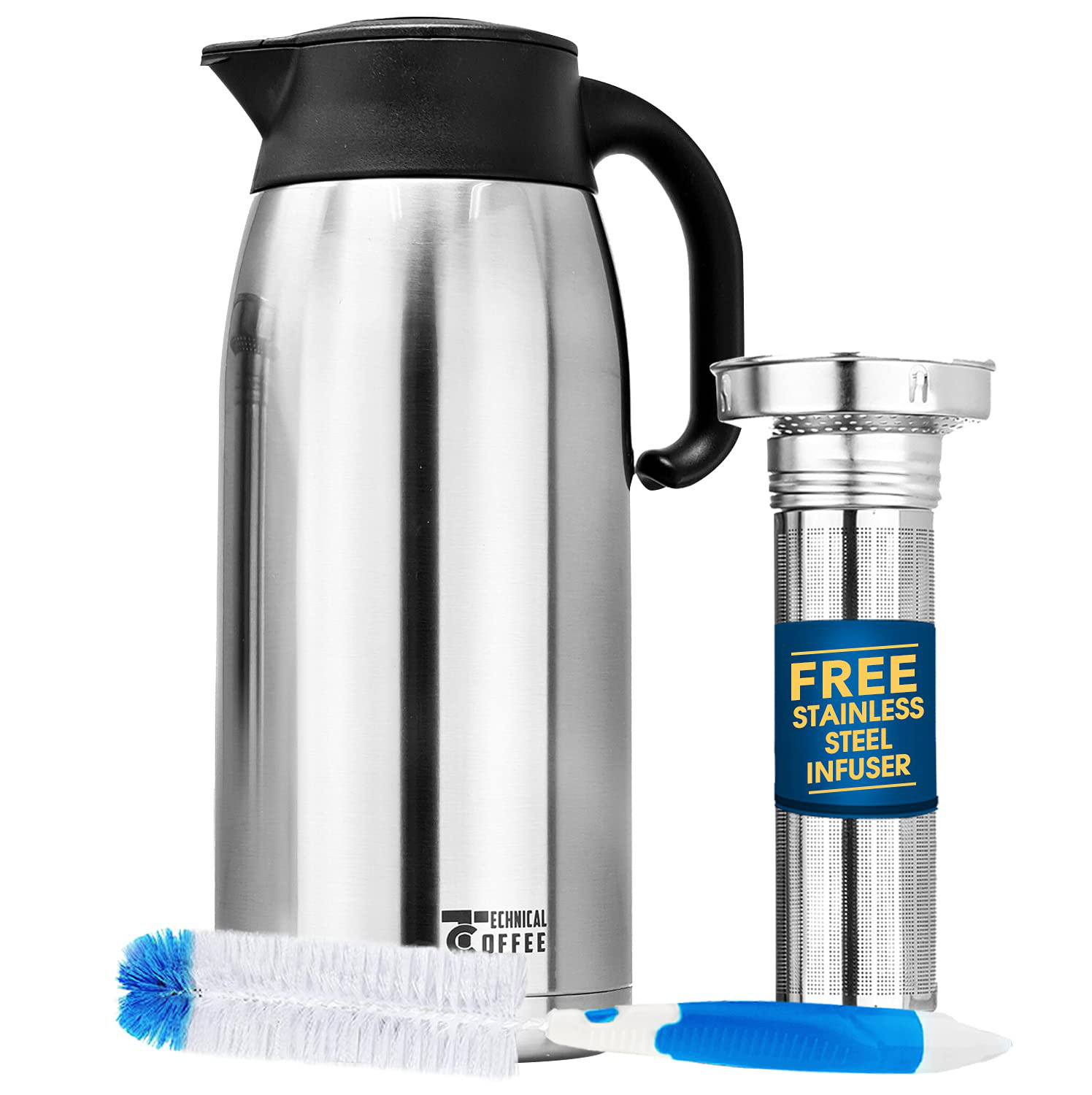 15 Best Thermal Carafe in 2022: Top Brands Review Our double walled coffee maker thermal carafe is made up of a durable 18/8 (304) stainless steel interior and exterior, features a non-slip silicone base. It is durable, reusable, easy to clean, and ideal for home or office. Our thermal coffee carafe uses a Press-down opening/closing mechanism. The 10 Best Thermal Carafe Coffee Makers of 2022 - The Spruce Eats For those who love a hot cup of joe, here are the best thermal carafe coffee makers available. Our Top Picks Best Overall: OXO Brew 8-Cup Coffee Maker at Amazon Jump to Review Best Budget: Black+Decker Thermal Coffeemaker at Amazon Jump to Review Best Thermal Control: Cuisinart Programmable 12-Cup Thermal Coffee Maker at Amazon Jump to Review 2022 Best Thermal Coffee Carafe - Reviews & Comparison Best Thermal Coffee Carafe for the Money: Cresimo 101-Ounce. Considering the reasonable asking price of this product and the fact that it boasts a 101-ounce capacity that makes it suited even for the most avid coffee drinkers, the Cresimo is a deal that you should look into if you want to make a value purchase. 7 Best Thermal Coffee Carafe 2022 (Updated and Reviewed) Cresimo is the best coffee carafe in the market, featuring a single-handed pouring feature with push-button technology. 2. Copco 2510-5815 Chloe Thermal Carafe Long time hot coffee with easy pouring PPOS: Easy for hand-washing, Easy pouring experience, Stunning and elegant design CONS: Glass cylinder very prone to cracking. View on Amazon